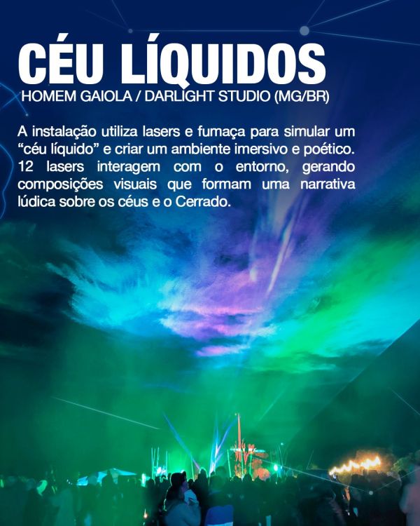 12 lasers interagem com entorno, gerando composições visuais que formam uma narrativa lúdica sobre os céus e o Cerrado.